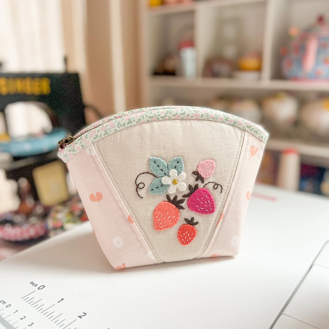 It is easy to make and helps you DIY Clamshell Zipper Pouches, which can hold anything you want to store, such as sewing items or pens, makeup brushes, etc.