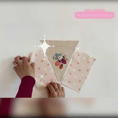 Using the wheel cutter tool, cut off the excess as shown and sew it with another piece of fabric.