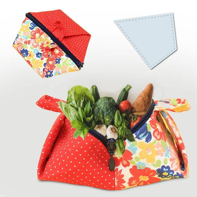 🎁This flat pouch is in the shape of a hexagon. When you hold things and lift the pouch by holding a small handle, it becomes a star or a jar.