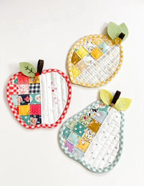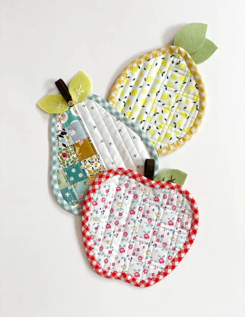 Today I have prepared for you three sewing templates for fruit-shaped coasters: apple🍎, pear🍐, and lemon🍋.