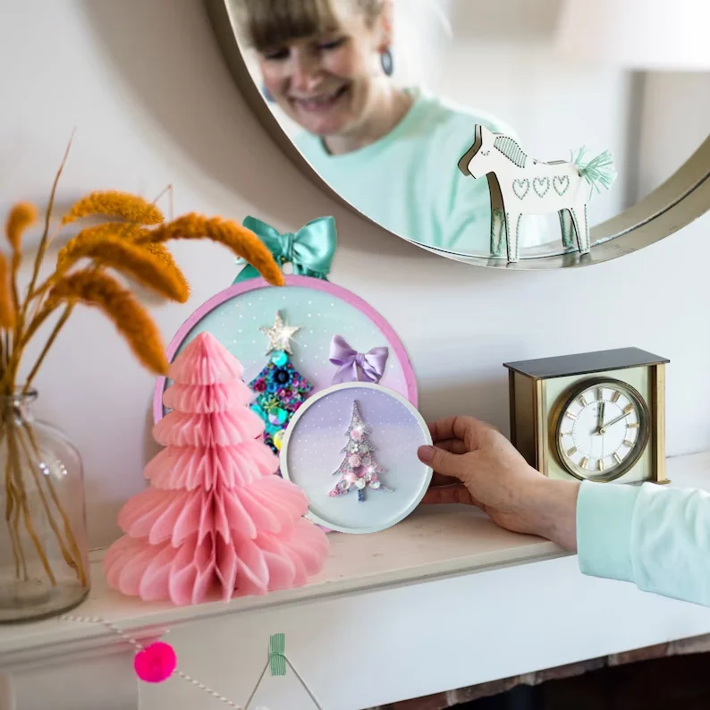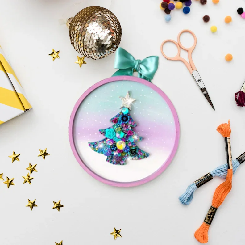 This fun Christmas kit is perfect for craft lovers and embroidery, sewing enthusiasts. For starters, a helpful Christmas tree decorating instruction booklet is included, which will guide you through things like how to set up the hoop, choose your favorite beads, small buttons and more, let your imagination run wild!