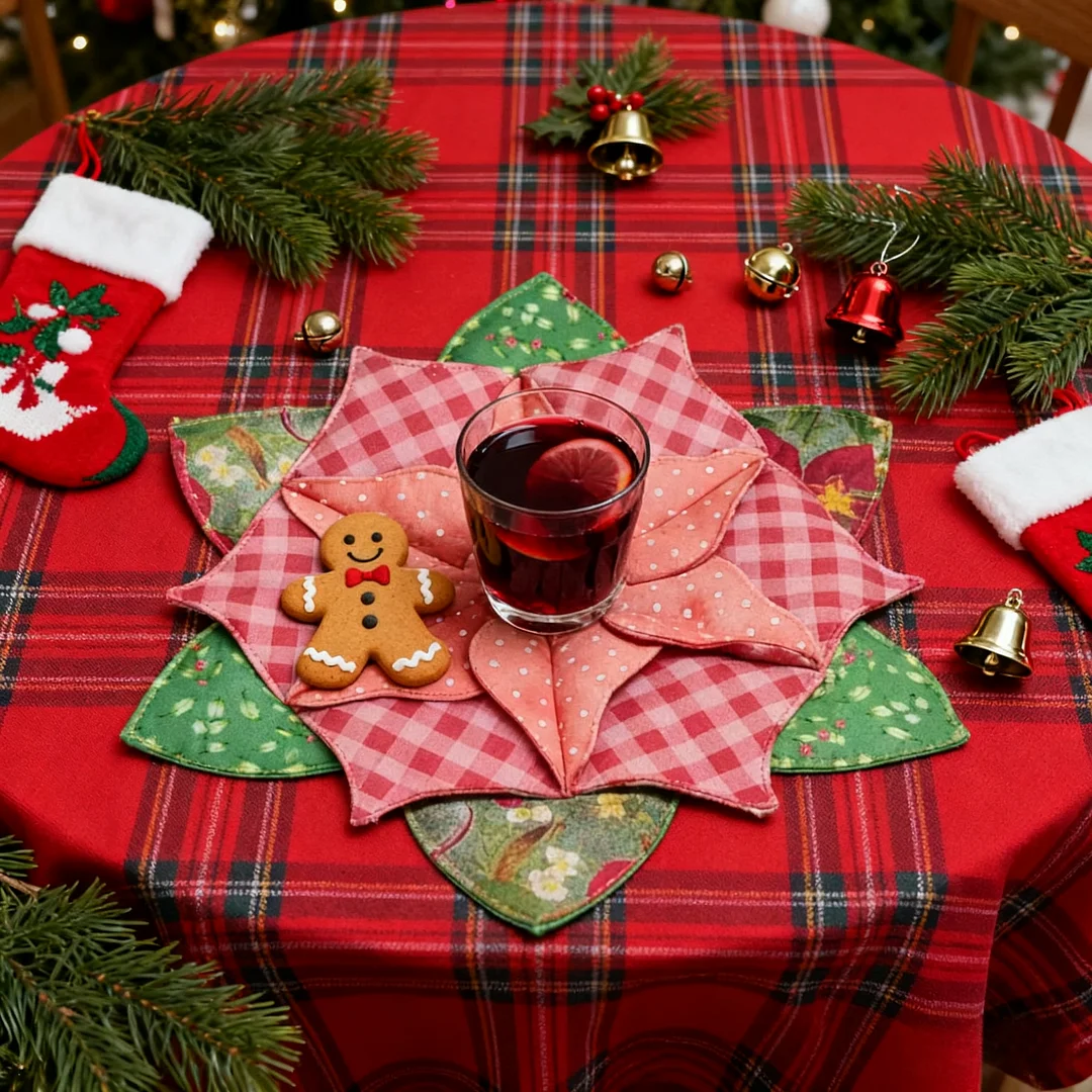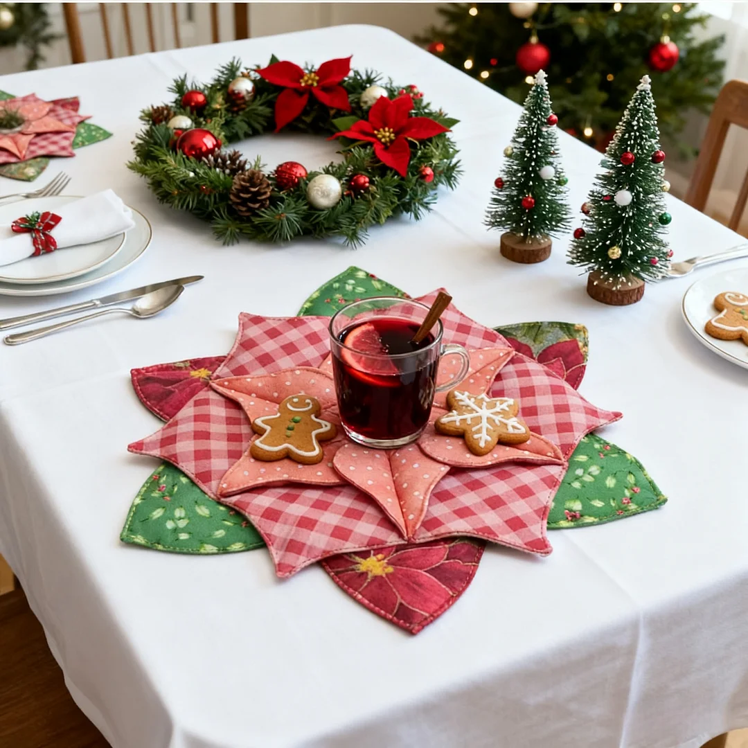 ☺️Simply follow the template to cut and sew, and you'll have beautiful Christmas flower placemats to instantly elevate your tabletop!