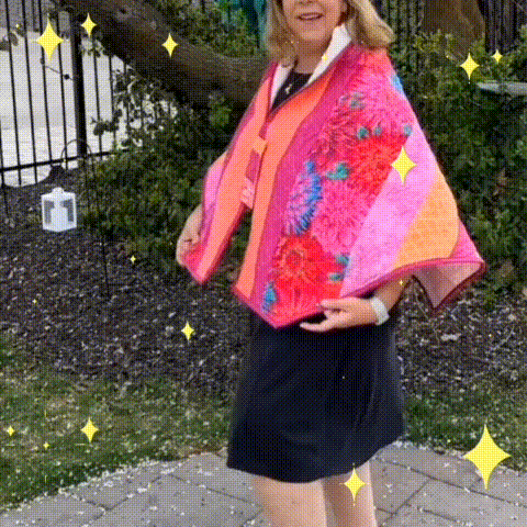 A shawl is more than just a piece of art; it's a "carry-on hug." Use your favorite fabric and color combination to make it unique. Whether draped over your shoulders or gifted to a loved one, this warmth will last forever.