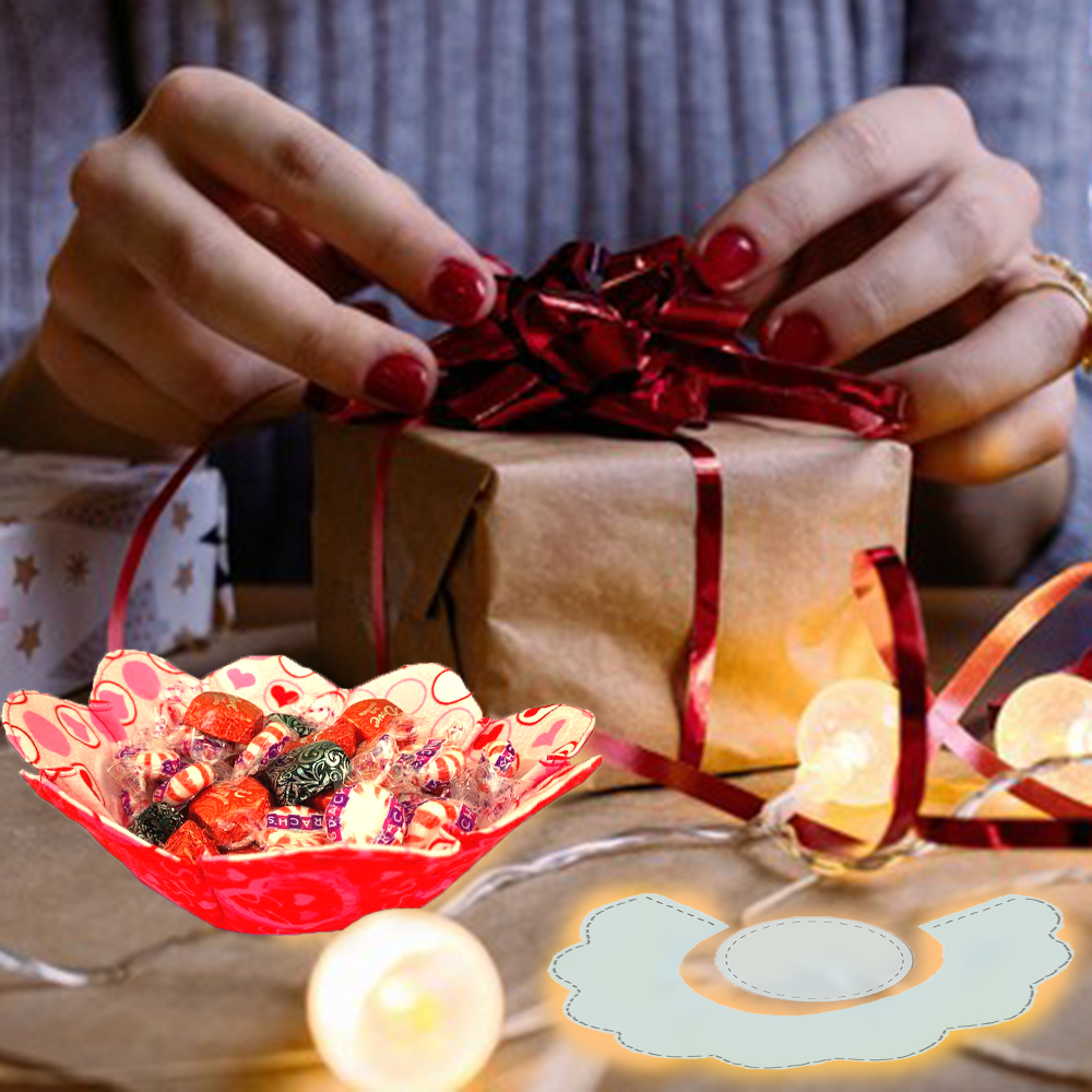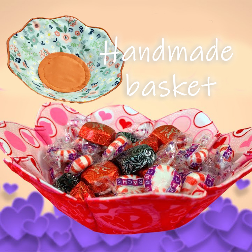 It's a good idea to make a flower basket/bowl out of fabric, isn't it?