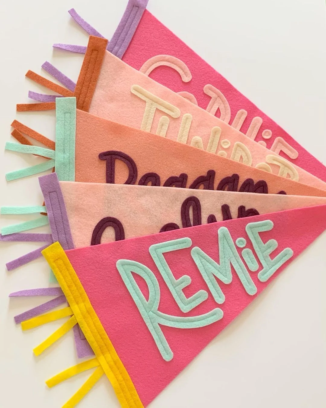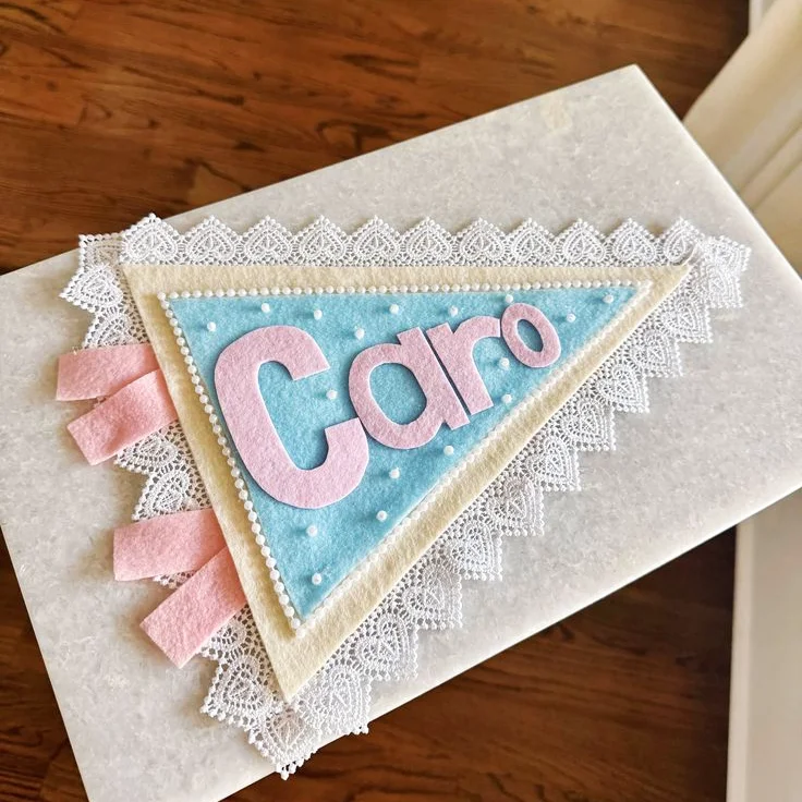 🧵👉This felt name pennant sewing template makes it easy to sew your own personalized pennant—whether it's a name, a holiday greeting, or a party slogan, it can be transformed into a heartwarming fabric decoration.
