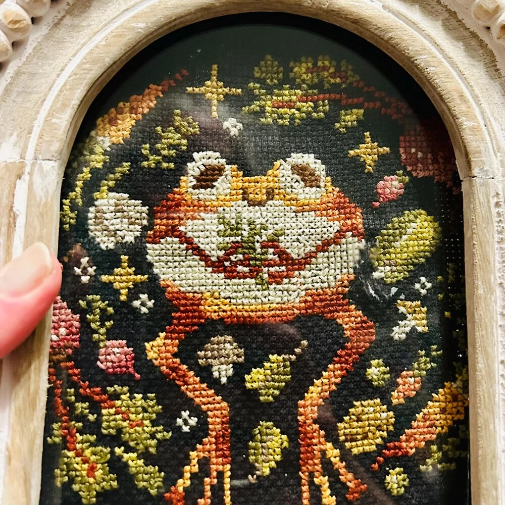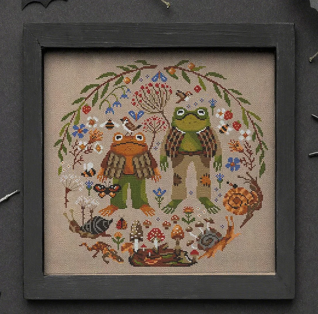 Leap into a natural wonderland: A magical embroidery journey with a frog, toad, and goose! 🌿✨