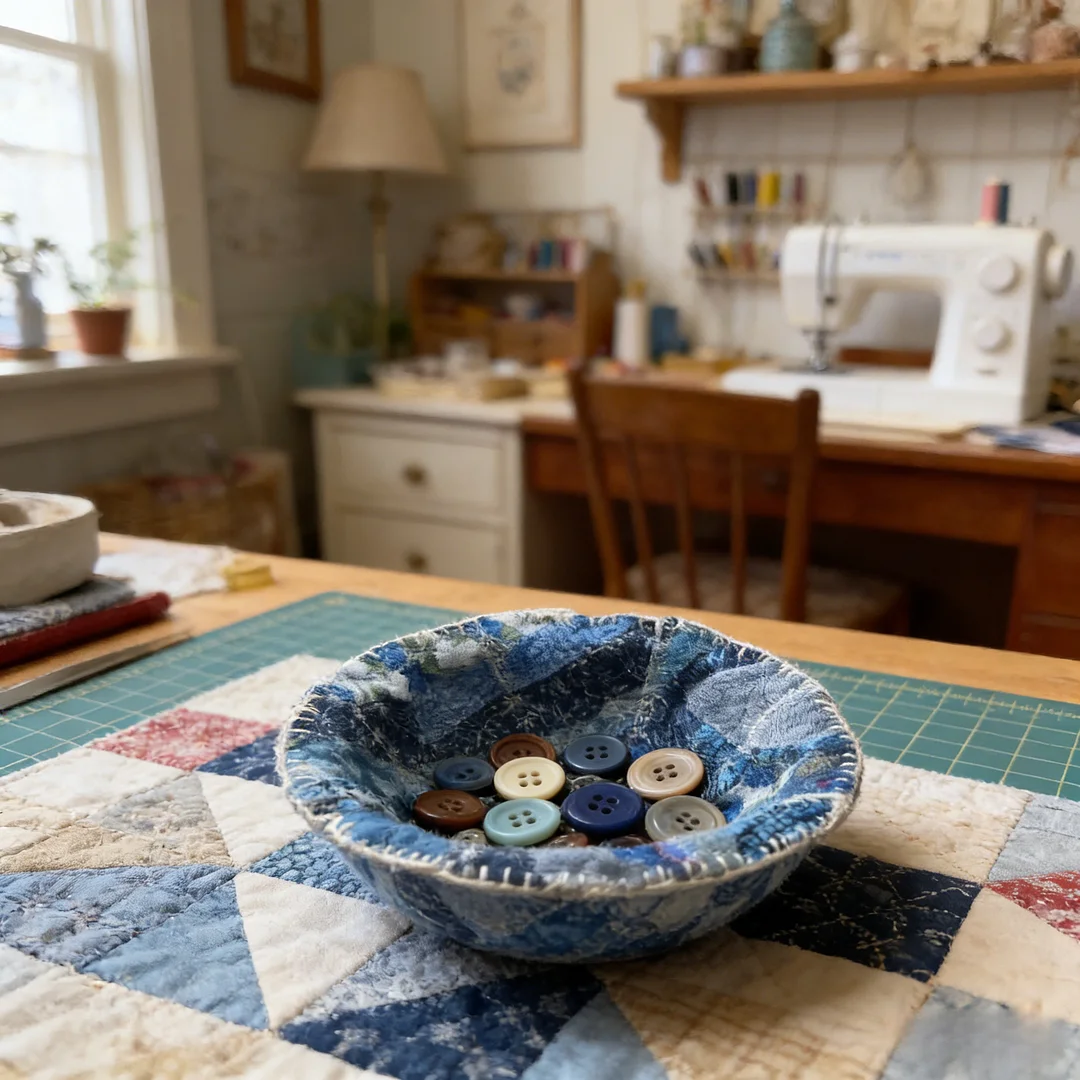 Whether displayed in the sewing room, living room, or as a gift, it exudes the warmth of handmade craftsmanship.