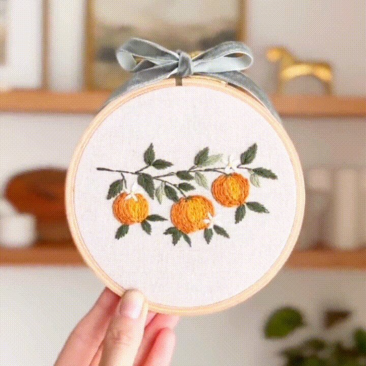 The finished orange embroidery is suitable for decorating spaces such as kitchens and dining rooms, adding a touch of fresh fruity atmosphere. 🍊🏡