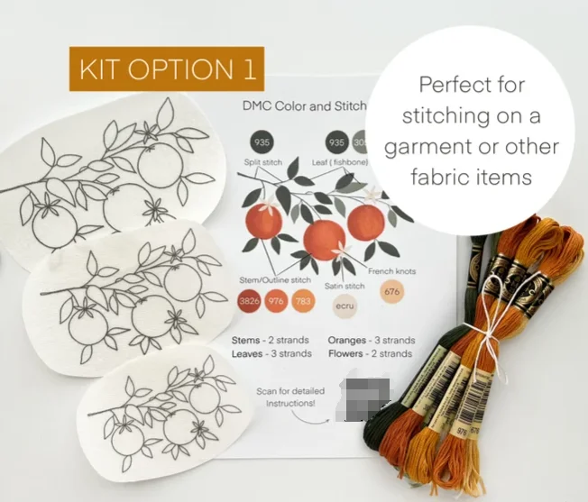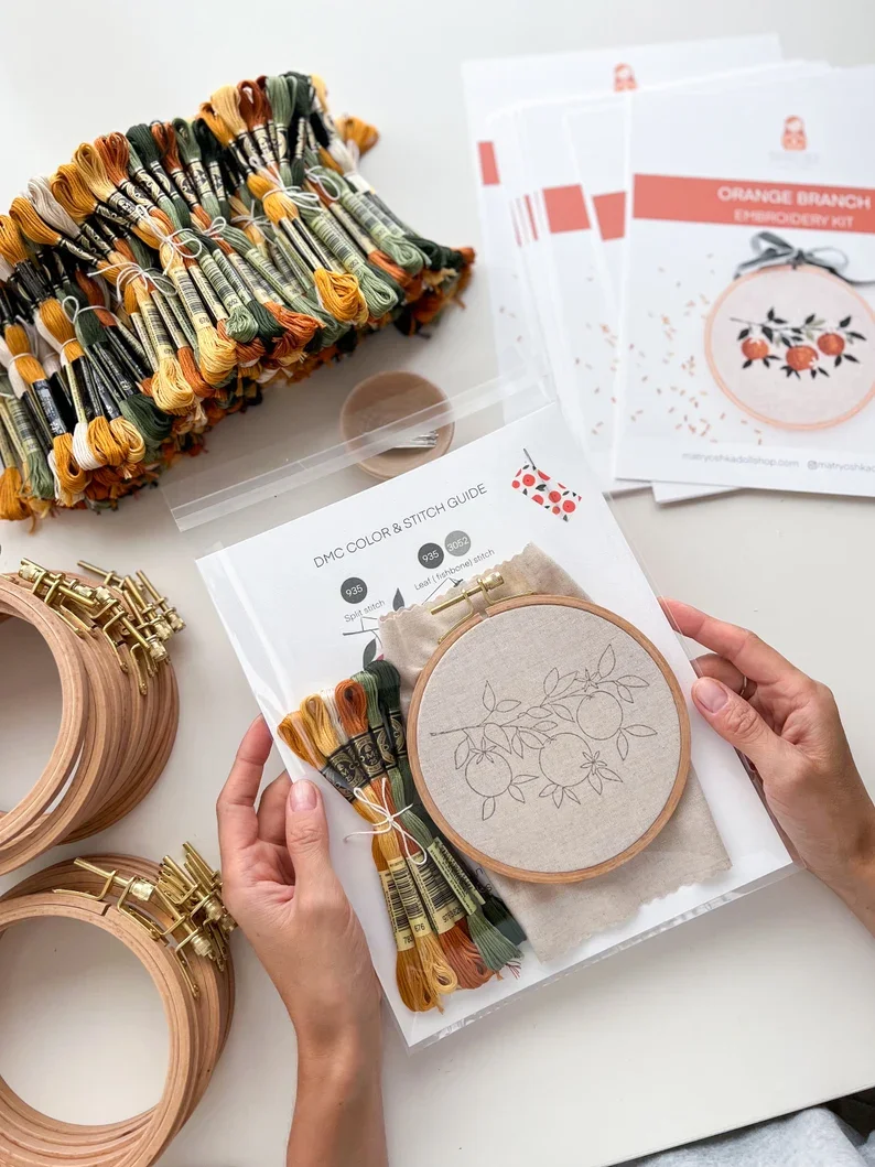 Premium Embroidery Thread & Needle ✂️ – All the colors and tools you need to create a lifelike orange pattern.