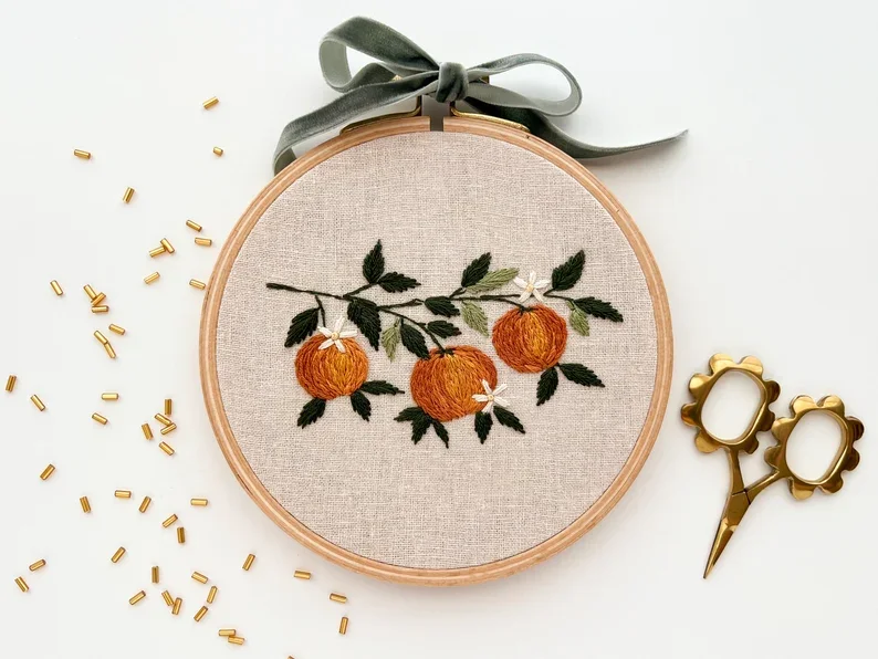🧵🍊Are you looking for an embroidery design that combines branches and oranges?