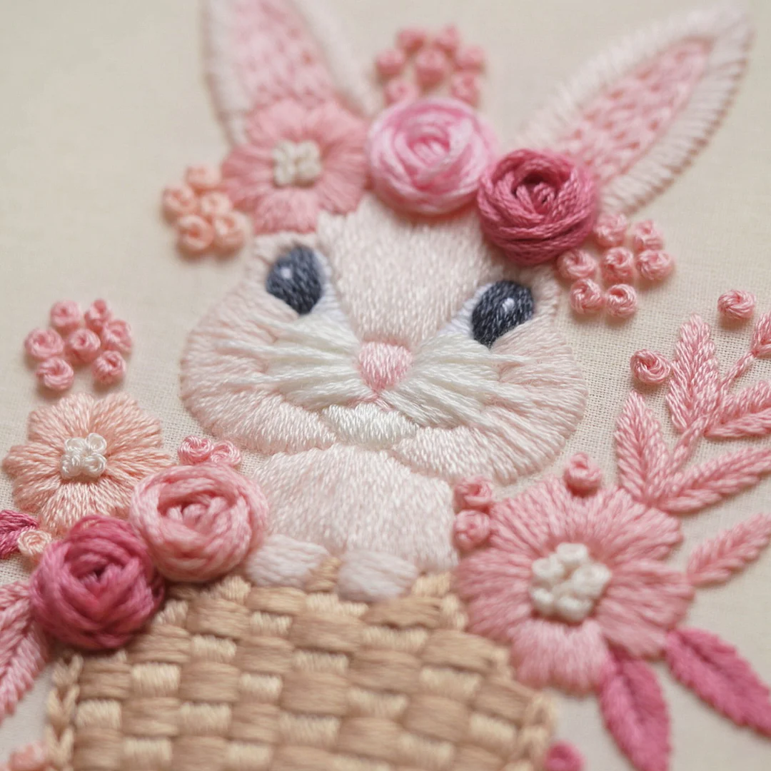 Welcome to our pink bunny embroidery world, weave a time full of happiness and warmth with every stitch in this coming Easter.
