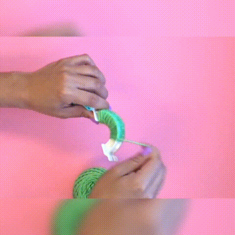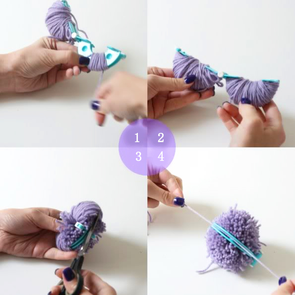 Pom-Pom Maker is so easy to use! In just 4 steps, wrap the wool evenly around the Pom-Pom Maker, pull the center tight to secure and cut off the ruffles.