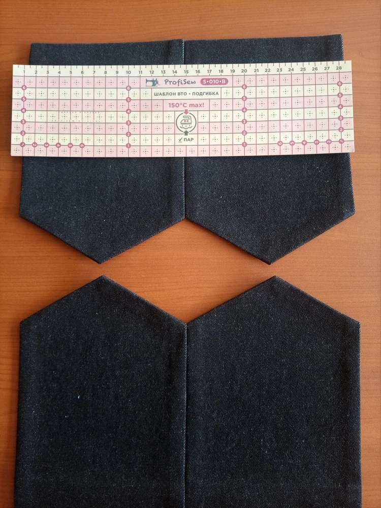 👇 Template #1: For hemming and ironing the bottom of clothes (skirts, trousers, jackets, sleeves) to create perfectly smooth vent edges, patch pockets, flaps. The centimeter scale on the template helps you bend and iron to a given amount without pre-marking with chalk, which is very convenient and time-saving.