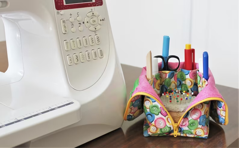 Large: 12 inches![Introducing the Catch-all Cutie! It's an adorable tabletop sewing organizer that zips… | Sewing organization, Sewing machine extension table, Unique items products]()