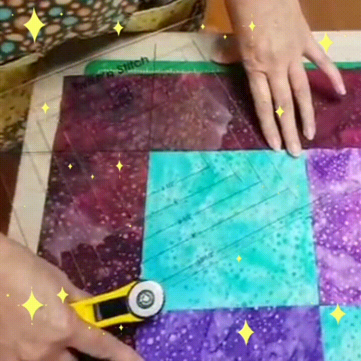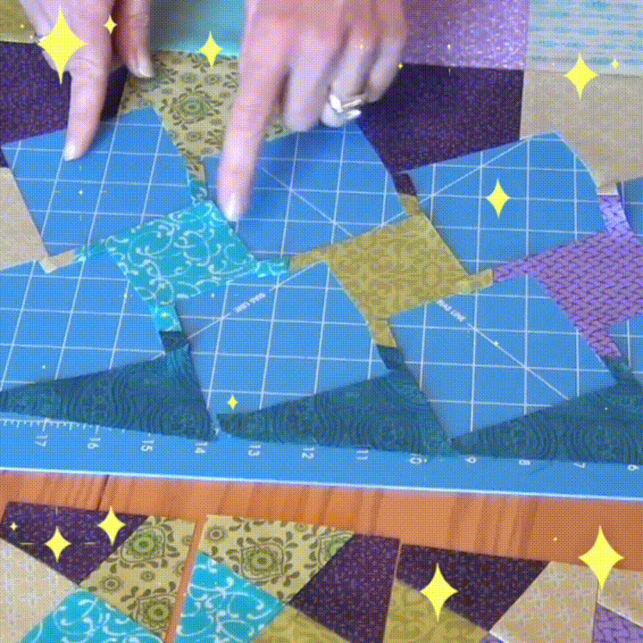 Create zigzag pinwheel quilts, borders and blocks. Start by stitching squares and borders. Put the ruler over the seam, cut the slot, twist the ruler and cut again. There are endless possibilities waiting for you to discover!